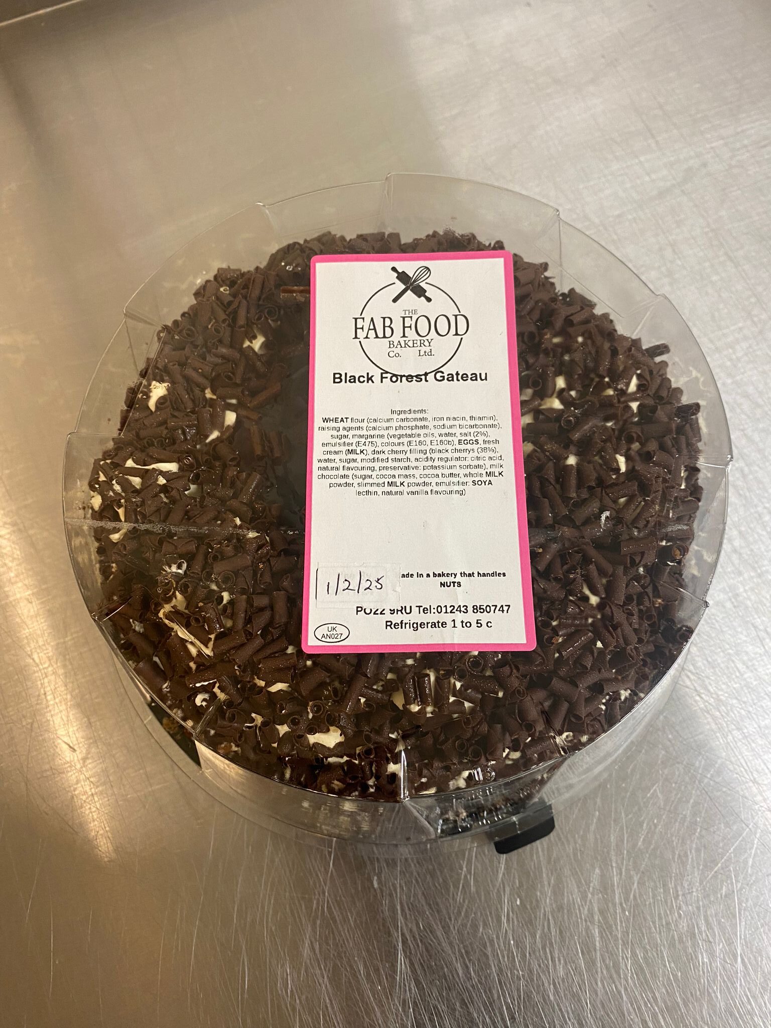 WHEAT flour ( calcium carbonate , iron niacin , thiamin ) , raising agents ( calcium phosphate , sodium bicarbonate ) , sugar , margarine ( vegetable oils , water , salt ( 2% ) , emulsifier ( E475 ) , colours ( E160 , E160b ) , EGGS , fresh cream ( MILK ) , dark cherry filling ( black cherrys ( 38% ) , water , sugar , modified starch , acidity regulator : citric acid , natural flavouring , preservative : potassium sorbate ) , milk chocolate ( sugar , cocoa mass , cocoa butter , whole MILK powder , slimmed MILK powder , emulsifier : SOYA lecthin , natural vanilla flavouring )