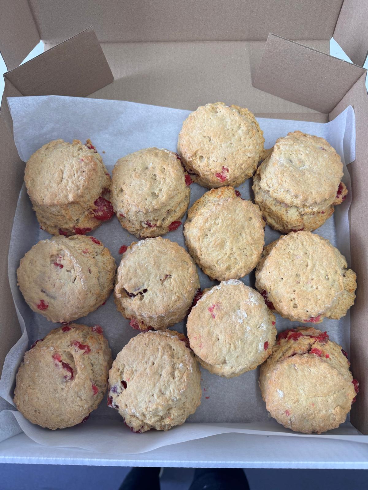 Flour ( WHEAT flour , calcium carbonate , thiamin , niacin , iron , baking powder ) , sugar , margarine ( Vegetable Oils ( Palm , Rapeseed ) , Glace cherries ( Cherries; Sucrose; Preservatives : Potassium Sorbate and SULPHUR DIOXIDE , MILK