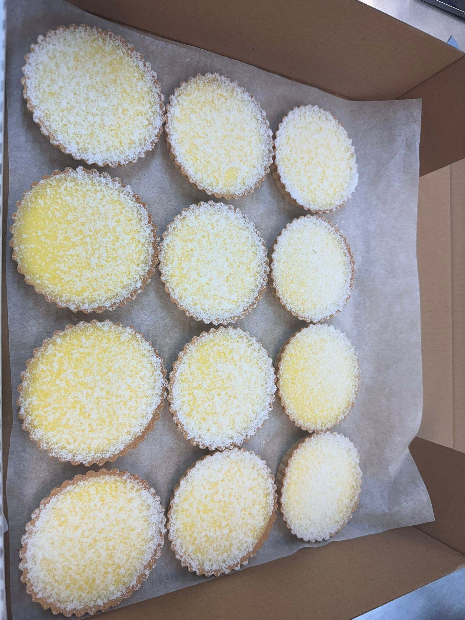 Pastry (palm fat, sugar, rapeseed oil, free range EGG, water, coconut fat, salt, skimmed MILK powder, WHEAT flour (GLUTEN) , Fresh Cream (MILK), EGG white, tarte citron FRE (sugar, modified starch, Snow Dusting *