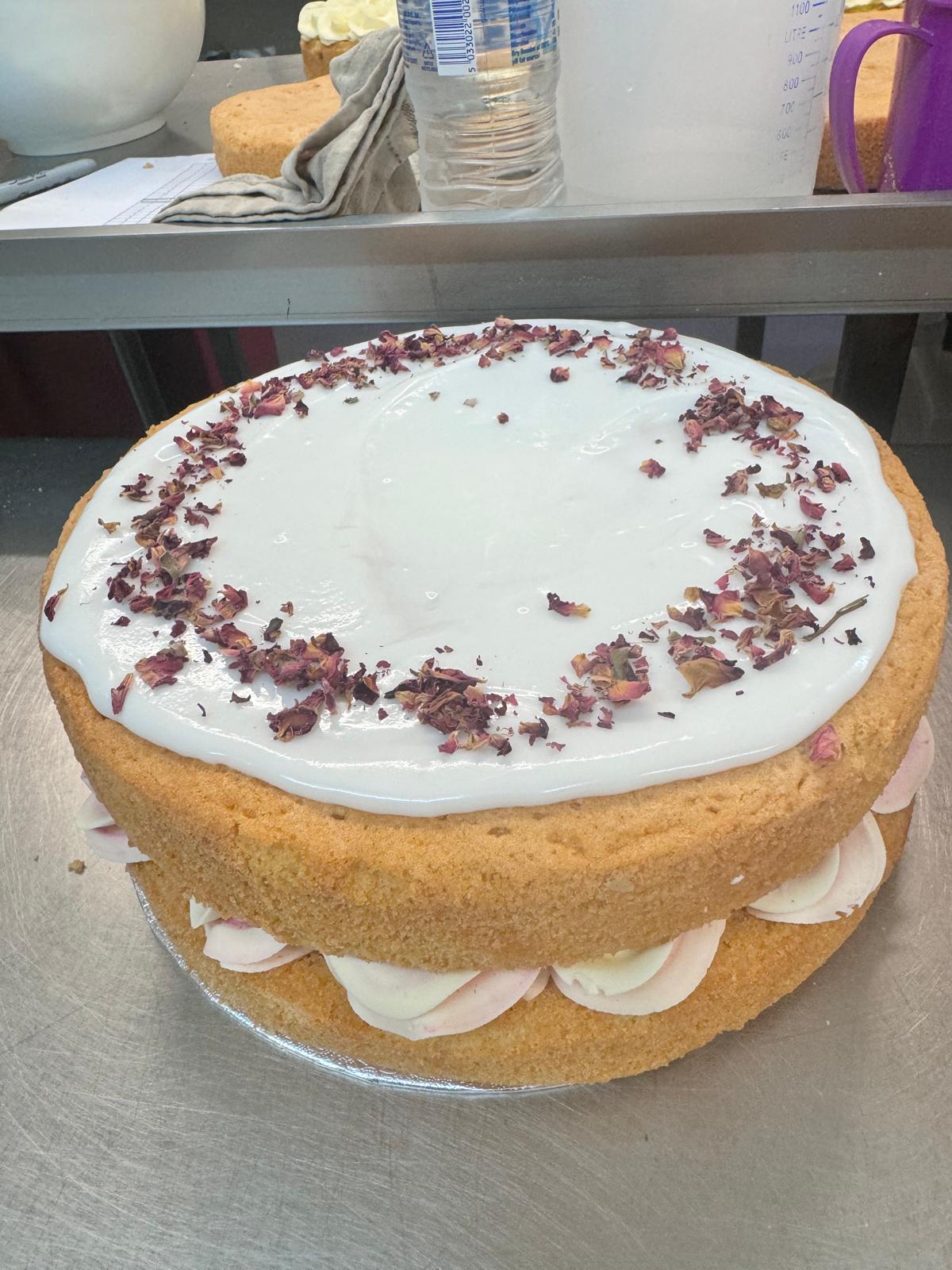 Flour ( WHEAT flour , calcium carbonate , thiamin , niacin , iron , baking powder ) , sugar , margarine ( Vegetable Oils ( Palm , Rapeseed ) , Water , Salt ( 2% ) , Emulsifier : Polyglycerol Esters of Fatty Acids , Colours : Curcumin , Annatto Bixin , Flavouring ) , Butter ( MILK ) , EGGS , icing sugar ( maize starch , refined sugar cane ) , raspberry jam ( Sugar , Raspberry Purée , Citric Acid , Gelling Agent ( Pectin ) , Acidity Regulator ( Trisodium Citrate ) . natural raspberry flavouring ( sugar , raspberry ( 26% ) , glucose-fructose syrup , colouring foods : concentrates ( carrot , blackcurrant ) , acid ( citric acid ) , acidity regulator ( trisodium citrate ) , modified starch ( mazie ) , dried rose petles , rose flavouring ( mono-propylene glycol , ethonal , flavourings ) .