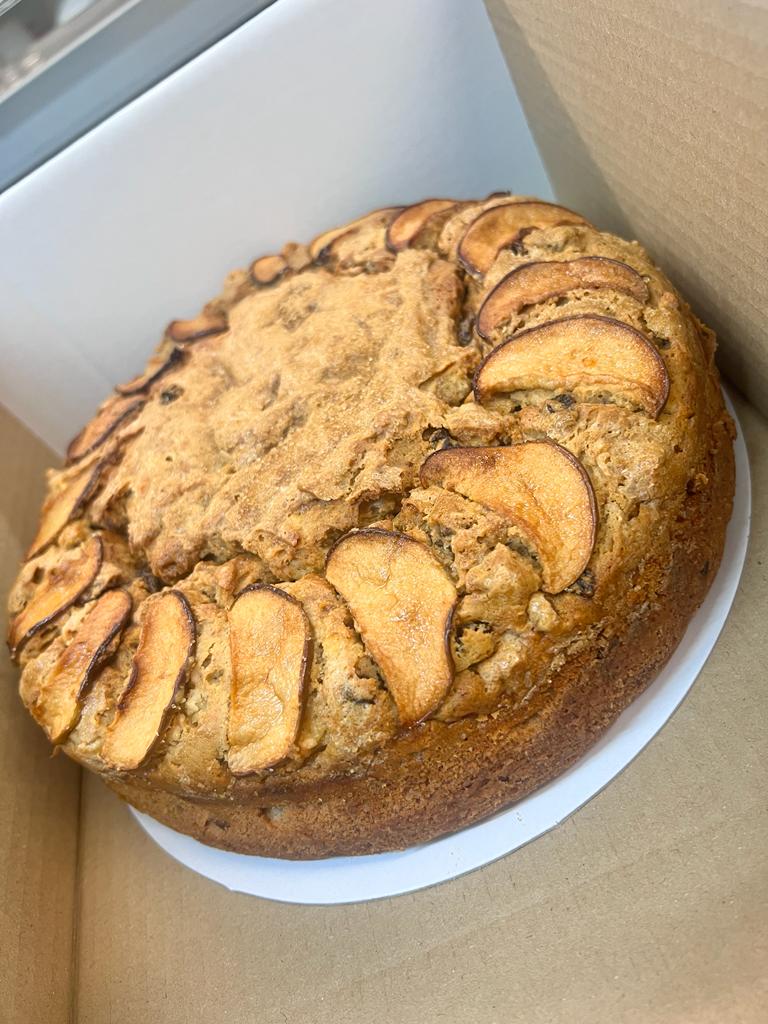 WHEAT flour (WHEAT flour; Calcium carbonate; Niacin; Iron; Thiamine); Sugar; Palm oil; Rapeseed oil; Maize starch; whole EGG powder; whey powder; Raising agent: Diphosphates, Sodium carbonates; EGG white powder; Emulsifier: Mono- and diglycerides of fatty acids; Flavouring; Mixed spice (Cassia Cinnamon, Coriander, Ginger, Allspice, Clove, Nutmeg), glace cherries (Cherries 53%,Glucose-Fructose Syrup, Sugar, Citric Acid, Preservatives: Potassium Sorbate, SULPHUR DIOXIDE ; Colour: Erythrosine), WALNUTS, Bramley Apple (Sugar, Water, Starch, Potassium Sorbate (E202), Sodium Metabisulphite (E223)), salt