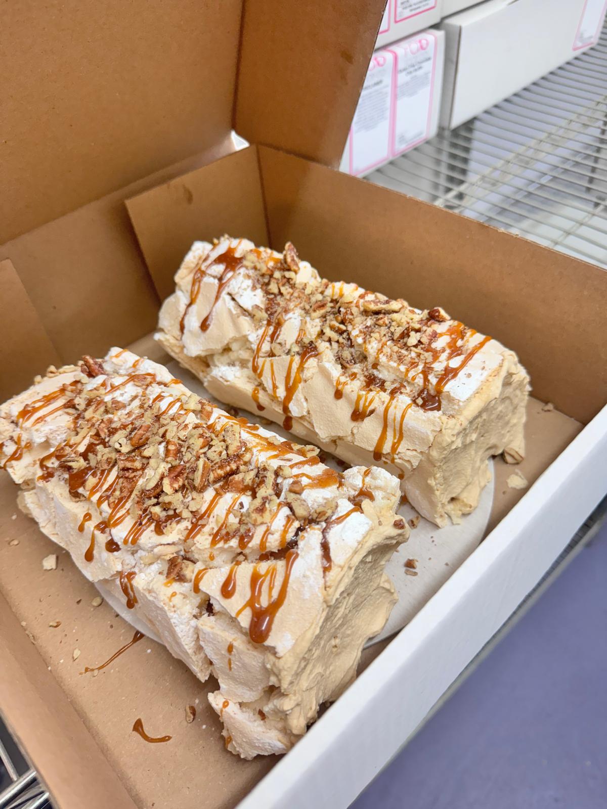 Sugar , EGG white , fresh cream ( MILK ) , PECAN NUTS ( 8% ) , caramel compound ( Milk caramel ( glucose-fructose syrup , sugar , sweetened condensed MILK , water ) , caramel ( glucose-fructose syrup , sugar , water ) , caramel ( sugar , water ) ) , dark chocolate coating ( Sugar , Palm Oil ( Palm Oil , Fully Hydrogenated Palm Oil ) , Fat Reduced Cocoa Powder ( 11% ) , Whey Powder ( MILK ) , Emulsifiers : Polyglycerol Polyricinoleate , SOYA Lecithins , Flavouring ) , cornflour , vinegar ( Water , Malted BARLEY , Malted BARLEY Extract . Acidity 5% ) , vanilla flavouring ( water , propylene glycol , caramel sugar syrup , thickener : xanthan gum; acidity regulator : citric acid; preservative : potassium sorbate ) .